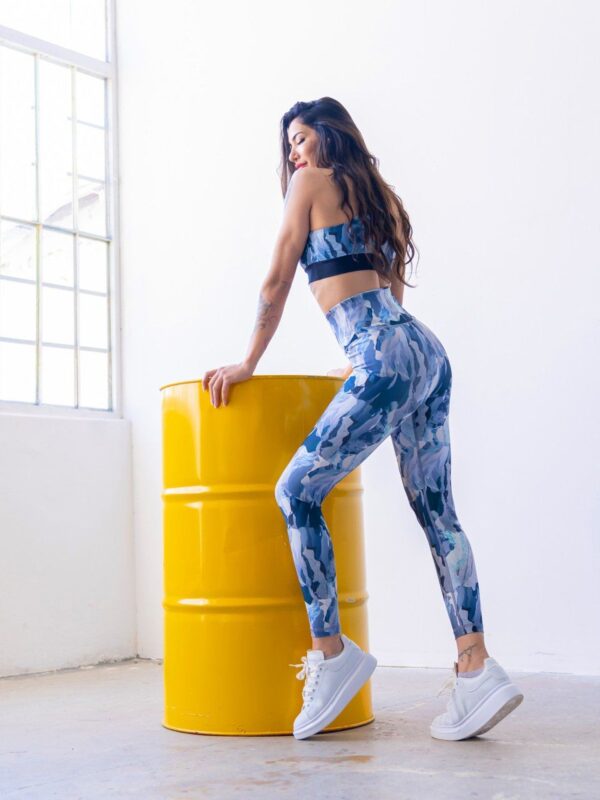 High Waist Lycra Set (Bra & Legging) – Sky Blue Pattern
